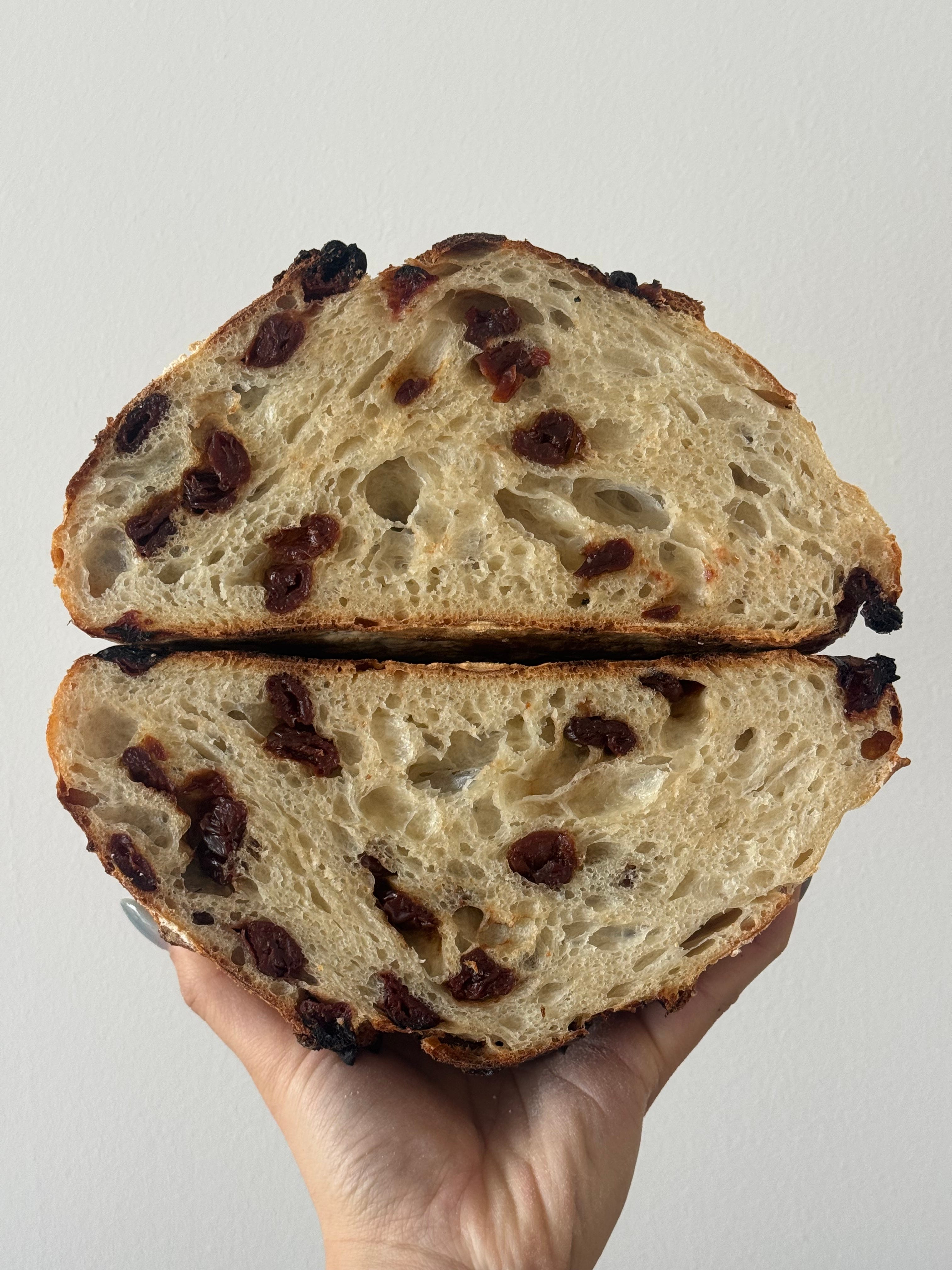Loaf of the Week: This cherry sourdough came out perfect to me - I love baking in the winter, but when spring is coming… I can literally see a difference in my sourdough. The ovenspring is always a little bit better and the crumb is a little more open.